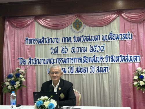 วันนี้ (26 ธันวาคม 2568) ที่โรงแรมบีพี สมิหลา บีช อำเภอเมือง จังหวัดสงขลา สำนักงานคณะกรรมการการเลือกตั้ง(กกต.)ประจำจังหวัดสงขลา จัดกิจกรรม “กกต.สงขลา พบสื่อมวลชน” โดยมีนายธนกฤต นาคจารุพงษ์ ผู้อำนวยการสำนักงานคณะกรรมการการเลือกตั้งประจำจังหวัดสงขลา เป็นประธาน เพื่อสร้างความร่วมมือกับสื่อมวลชนในการเผยแพร่ข้อมูลการเลือกตั้งให้ประชาชนเข้าใจถูกต้อง ภายหลังการยุบสภาผู้แทนราษฎร