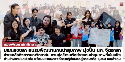 กองพัฒนานักศึกษา มรภ.สงขลา พัฒนาแกนนำสุขภาพ ปั้น นศ. จิตอาสาช่วยเหลือกิจกรรมหาวิทยาลัย ขยายผลองค์ความรู้ต่อยอดสู่ครอบครัว ชุมชน และสังคม