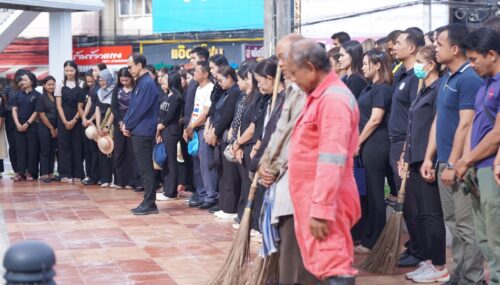 ช่วงเช้าวันที่ 7 พฤศจิกายน 2568 ผศ.พิเชษฐ์ จันทวี อธิการบดีมหาวิทยาลัยราชภัฏสงขลา (มรภ.สงขลา) มอบหมายให้ ผศ.ดร.กันตภณ มะหาหมัด รองอธิการบดีฝ่ายบริหารและพัฒนาหน่วยงาน พร้อมด้วยผู้บริหาร และบุคลากรสำนักงานอธิการบดี จัดกิจกรรมจิตอาสา “รวมพลังแห่งความภักดี” ในห้วงระยะเวลาภายใน 100 วันแห่งการสวรรคต เพื่อถวายเป็นพระราชกุศลแด่ สมเด็จพระนางเจ้าสิริกิติ์ พระบรมราชินีนาถ พระบรมราชชนนีพันปีหลวง