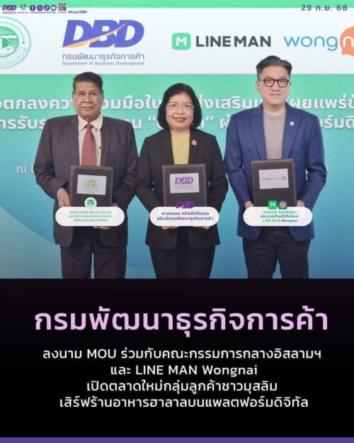 ความร่วมมือในครั้งนี้ กรมพัฒนาธุรกิจการค้าจะสนับสนุนการพัฒนาธุรกิจร้านอาหารฮาลาลให้มีความเป็นมืออาชีพมากยิ่งขึ้น พร้อมเผยแพร่ข้อมูลร้านที่ได้รับการรับรองมาตรฐานผ่านช่องทางดิจิทัล ขณะเดียวกัน LINE MAN Wongnai ในฐานะแพลตฟอร์มออนดีมานด์รายใหญ่ของไทย จะช่วยขยายการเข้าถึงผู้บริโภค โดยปัจจุบันมีร้านอาหารฮาลาลที่อยู่บนแพลตฟอร์มแล้วกว่า 70% และมีแผนขยายให้ครอบคลุมพื้นที่บริการเดลิเวอรีทั่วประเทศ