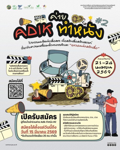 คณะวิทยาการสื่อสาร ม.อ.ปัตตานี ชวนเยาวชนสร้างสื่อสะท้อน “ความเหลื่อมล้ำทางการศึกษา”เปิดรับสมัครค่าย Adik ทำหนัง 2 – เยาวชนนักสร้างสื่อ