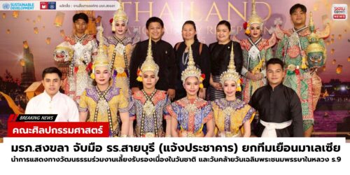 คณะศิลปกรรมฯ มรภ.สงขลา จับมือ รร.สายบุรี (แจ้งประชาคาร) ยกทีมเยือนมาเลเซียนำการแสดงทางวัฒนธรรมร่วมงานเลี้ยงรับรองเนื่องในวันชาติ และวันคล้ายวันเฉลิมพระชนมพรรษาในหลวง ร.9