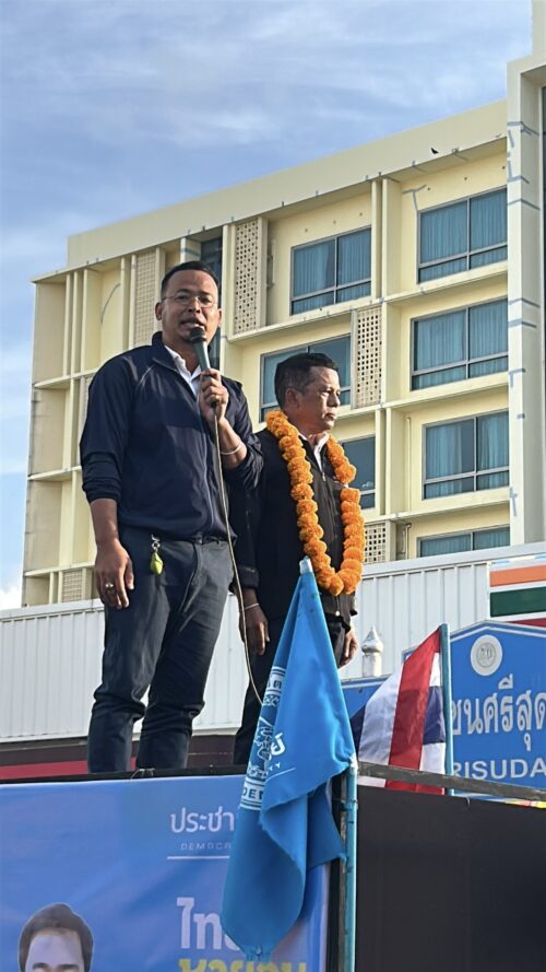 วันนี้ (25 มกราคม 2569) ที่ตลาดนัดวันอาทิตย์ในเขตอำเภอเมือง จังหวัดสงขลา ซึ่งถือเป็นตลาดขนาดใหญ่และมีประชาชนเดินทางมาจับจ่ายจำนวนมาก นายจุรี นุ่มแก้ว รองหัวหน้าพรรคประชาธิปัตย์ พร้อมด้วยแกนนำพรรค อาทิ นายเจือ ราชสีห์ และนายไพเจน มากสุวรรณ์ ลงพื้นที่ช่วยหาเสียงให้นายพิเชฏฐ พัฒนโชติ ผู้สมัคร ส.ส. เขต 1 พรรคประชาธิปัตย์ ในช่วงโค้งสุดท้ายของการเลือกตั้ง