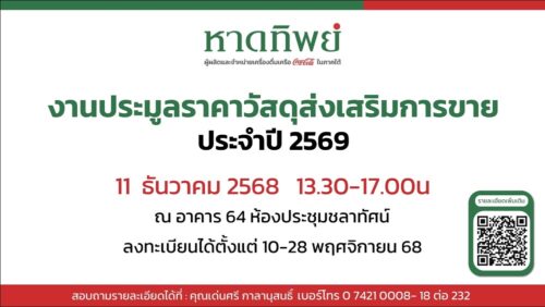 บมจ.หาดทิพย์ เปิดรับสมัครผู้เข้าประมูลราคาวัสดุส่งเสริมการขายและรับซื้อเศษวัสดุ ประจำปี 2569
