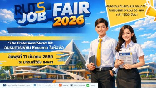 RUTS JOB FAIR 2026 จัดขึ้นให้แก่นักศึกษา ศิษย์เก่า และประชาชน สามารถสมัครงานโดยตรงกับสถานประกอบการ นักศึกษาได้เรียนรู้กระบวนการ วิธีสมัครงาน การสัมภาษณ์เข้าทำงาน รวมทั้งได้เห็นถึงคุณภาพบุคลากรที่สถานประกอบการต้องการ และเสริมสร้างความสัมพันธ์อันดีระหว่างมหาวิทยาลัยกับสถานประกอบการ โดยมีอบรมการเขียน Resume ในหัวข้อ “The Professional Starter Kit: ปรับทักษะ ปั้นเรซูเม่ เตรียมความพร้อมสู่โลกทำงานยุคดิจิทัล 2026” และรับสมัครงานโดยตรงในรูปแบบ Onsite ให้กับนักศึกษา ในวันพุธที่ 11 มีนาคม 2569 ณ มหาวิทยาลัยเทคโนโลยีราชมงคลศรีวิชัย