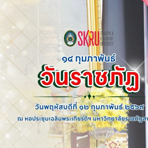 มรภ.สงขลา จัดงานวันราชภัฏ ประจำปี 2569 น้อมเกล้าน้อมกระหม่อมสำนึกในพระมหากรุณาธิคุณในหลวงรัชกาลที่ 9 พระราชทานนามสถาบันราชภัฏแก่วิทยาลัยครูทั่วประเทศ พร้อมร่วมสืบทอดอุดมการณ์ “คนของพระราชา ข้าของแผ่นดิน”