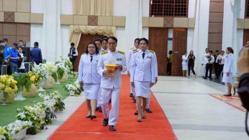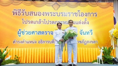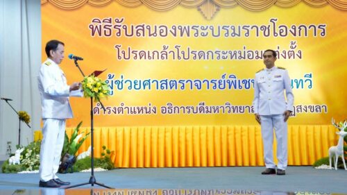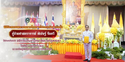 มรภ.สงขลา จัดพิธีรับสนองพระบรมราชโองการโปรดเกล้าโปรดกระหม่อมแต่งตั้ง ผศ.พิเชษฐ์ จันทวี ให้ดำรงตำแหน่งอธิการบดี