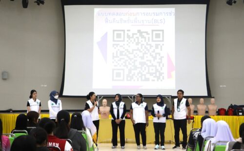 ทั้งนี้ การช่วยฟื้นคืนชีพขั้นพื้นฐานและการใช้เครื่องกระตุกหัวใจไฟฟ้าชนิดอัตโนมัติ ถือเป็นทักษะที่มีความสำคัญอย่างยิ่งต่อการช่วยเหลือผู้ที่อยู่ในภาวะฉุกเฉินทางการแพทย์ โดยเฉพาะภาวะหัวใจหยุดเต้นเฉียบพลัน ซึ่งหากได้รับการช่วยเหลืออย่างถูกต้องและทันท่วงที จะสามารถเพิ่มโอกาสในการรอดชีวิตและลดความสูญเสียได้อย่างมาก ซึ่งต้องขอขอบคุณคณะวิทยากรจากโรงพยาบาลสงขลา ที่สละเวลาและมาถ่ายทอดความรู้ รวมถึงคณะผู้จัดงานทุกฝ่ายที่ร่วมกันจัดโครงการนีให้สำเร็จลุล่วงไปด้วยดี