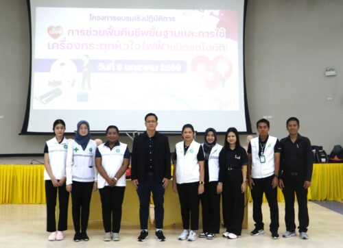 ทั้งนี้ การช่วยฟื้นคืนชีพขั้นพื้นฐานและการใช้เครื่องกระตุกหัวใจไฟฟ้าชนิดอัตโนมัติ ถือเป็นทักษะที่มีความสำคัญอย่างยิ่งต่อการช่วยเหลือผู้ที่อยู่ในภาวะฉุกเฉินทางการแพทย์ โดยเฉพาะภาวะหัวใจหยุดเต้นเฉียบพลัน ซึ่งหากได้รับการช่วยเหลืออย่างถูกต้องและทันท่วงที จะสามารถเพิ่มโอกาสในการรอดชีวิตและลดความสูญเสียได้อย่างมาก ซึ่งต้องขอขอบคุณคณะวิทยากรจากโรงพยาบาลสงขลา ที่สละเวลาและมาถ่ายทอดความรู้ รวมถึงคณะผู้จัดงานทุกฝ่ายที่ร่วมกันจัดโครงการนีให้สำเร็จลุล่วงไปด้วยดี