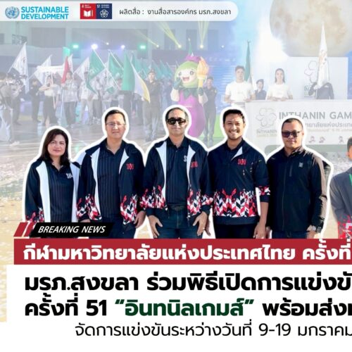 มรภ.สงขลา ยกทัพนักกีฬาร่วมชิงชัยกีฬามหาวิทยาลัยแห่งประเทศไทย ครั้งที่ 51 “อินทนิลเกมส์” กระชับมิตรภาพสถาบันอุดมศึกษา สร้างประสบการณ์สนามระดับประเทศ
