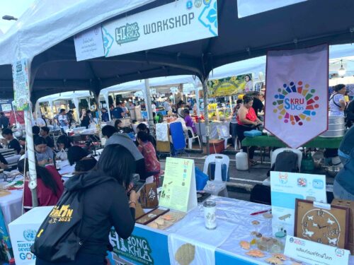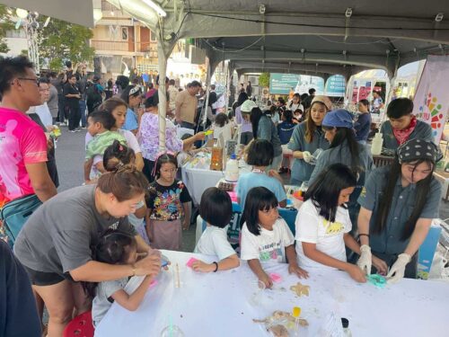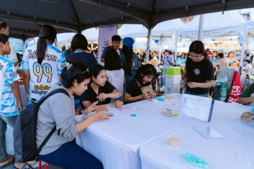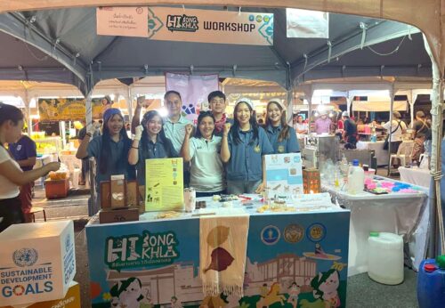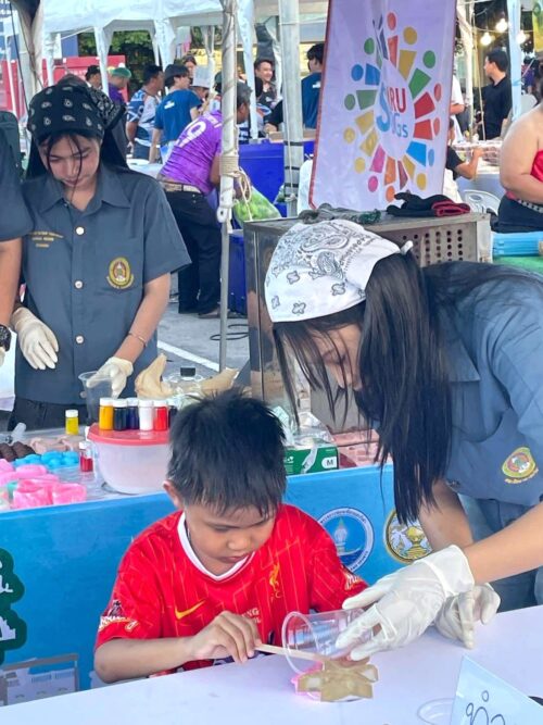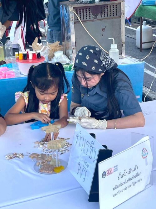 มรภ.สงขลา ร่วมกิจกรรม “ปั้นน้ำเป็นตัว” ด้วยเรซิน คณาจารย์ SDGs Project by SKRU นำทีมนักศึกษาหลักสูตรวิทยาศาสตร์ประยุกต์เชิงอุตสาหกรรม (ยางและพอลิเมอร์) ร่วมจัดนิทรรศการเผยแพร่องค์ความรู้บริการวิชาการบนฐานเศรษฐกิจหมุนเวียน ภายใต้เป้าหมายการพัฒนาที่ยั่งยืน พร้อมเปิดให้ผู้เข้าร่วมงานลองทำของที่ระลึกจากการนำวัสดุเศษเหลือทิ้งการเกษตรและอาหารทะเล