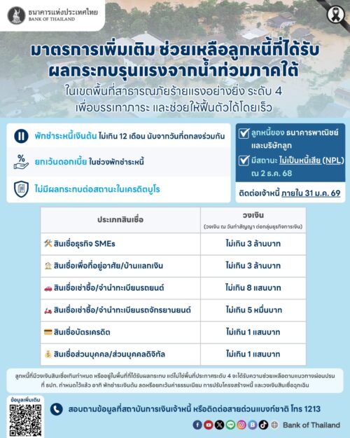 ️ ติดต่อเจ้าหนี้ภายใน 31 มกราคม 2569 ✅ยืนยันตัวตนว่าเป็นผู้ประสบภัยในพื้นที่ ✅แสดงหลักฐานความเสียหาย