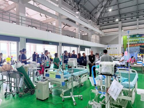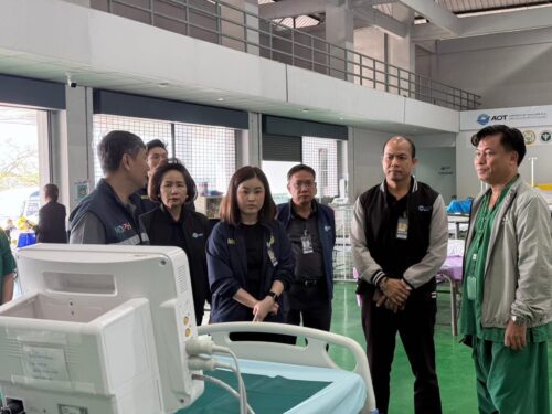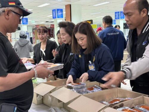 เวลา 08.30 น. ผอญ. และผู้บริหาร ร่วมแจกอาหารมื้อเช้าให้ผู้โดยสารที่ตกค้าง โดย AOT ได้จัดบริการอาหารและน้ำดื่มให้กับผู้โดยสารอย่างต่อเนื่องตั้งแต่วันที่ 23 พฤศจิกายนที่ผ่านมา จากนั้นคณะได้ลงพื้นที่ตรวจเยี่ยม โรงพยาบาลสนาม ณ อาคารอเนกประสงค์ ซึ่งสำนักงานสาธารณสุขจังหวัดสงขลาและ ทหญ. ร่วมกันจัดตั้งขึ้น เพื่อดูแลผู้โดยสารที่อาจมีปัญหาด้านสุขภาพและต้องการการปฐมพยาบาลอย่างเร่งด่วน