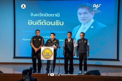 วันที่ 8 พฤศจิกายน 2568 ร้อยเอก ธรรมนัส พรหมเผ่า รองนายกรัฐมนตรี และรัฐมนตรีว่าการกระทรวงเกษตรและสหกรณ์ ลงพื้นที่ตรวจราชการจังหวัดปัตตานี เพื่อขับเคลื่อนนโยบายรัฐบาลด้านการพัฒนาเศรษฐกิจฐานรากและยกระดับคุณภาพชีวิตของประชาชนในพื้นที่ภาคใต้ ในโอกาสนี้ รองนายกรัฐมนตรีได้เดินทางมายัง มหาวิทยาลัยสงขลานครินทร์ วิทยาเขตปัตตานี เพื่อ พบปะหัวหน้าส่วนราชการระดับจังหวัด อำเภอ และตำบล ของจังหวัดปัตตานี แลกเปลี่ยนแนวทางการพัฒนาในประเด็นด้านเศรษฐกิจ สังคม และคุณภาพชีวิตของประชาชน โดยมี นางพาตีเมาะ สะดียามู ผู้ว่าราชการจังหวัดปัตตานี ผู้ช่วยศาสตราจารย์ ดร.อรุณีวรรณ บัวเนี่ยว รองอธิการบดีฝ่ายวิจัยและพันธกิจสังคม วิทยาเขตปัตตานี ให้การต้อนรับ พร้อมด้วยหัวหน้าส่วนราชการ หน่วยงานภาครัฐ ภาคเอกชน และภาคีเครือข่ายการพัฒนาจังหวัดปัตตานี ร่วมให้การต้อนรับรองนายกรัฐมนตรีและคณะ อย่างพร้อมเพรียง