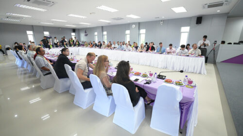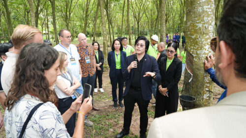 ภายในงานนำโดย นายวีรสิทธิ์ สินเจริญกุล CEO of Sri Trang Group และ นางสาวจริญญา จิโรจน์กุล กรรมการผู้จัดการใหญ่ STGT ร่วมกับคณะผู้บริหารระดับสูงและทีมงานผู้เชี่ยวชาญ ให้การต้อนรับคณะทูตและสื่อมวลชนอย่างอบอุ่น พร้อมนำเสนอศักยภาพองค์กรในหลากหลายมิติ อาทิ ประวัติความเป็นมา จุดแข็งของห่วงโซ่อุตสาหกรรมยางพาราแบบครบวงจร ระบบตรวจสอบย้อนกลับ (Traceability) และการดำเนินงานด้านสิ่งแวดล้อม สังคม และธรรมาภิบาล ภายใต้แนวคิด “Clean World Clean Gloves” (CWCG) หรือ “ถุงมือสะอาด โลกสะอาด” อย่างยั่งยืน จากนั้นคณะผู้แทนได้เยี่ยมชมโซนต่างๆ อาทิ ตัวอย่างผลิตภัณฑ์ กระบวนการผลิตถุงมือที่ได้มาตรฐานระดับโลกด้วยนวัตกรรมและเทคโนโลยี AI ที่ใส่ใจสิ่งแวดล้อม และการสาธิตกรีดยางพารา