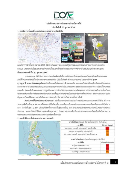 ศูนย์ประมวลวิเคราะห์สถานการณ์ภัยพิบัติด้านพืชภาคใต้ (ศปภ. ที่ 5) ขับเคลื่อนการเตรียมการป้องกันและการบริหารจัดการภัยพิบัติในช่วงฤดูฝนของภาคใต้