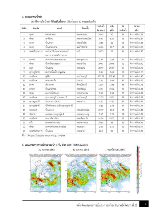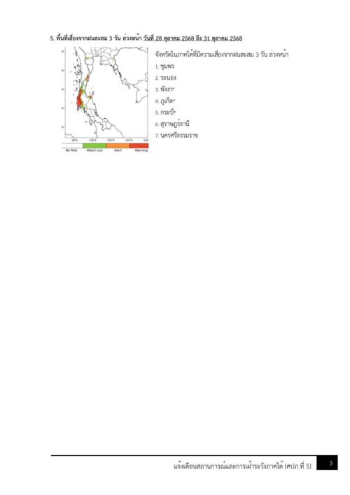 1. ศปภ.ที่ 5 สนับสนุนข้อมูลการแจ้งเตือนสถานการณ์และการเฝ้าระวังภัย ให้จังหวัด ภายในเวลา 09.00 น. ของทุกวัน