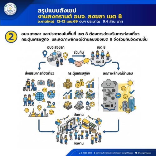 2.อบจ.สงขลา และประชาชนในพื้นที่ เขต 8 ต้องการส่งเสริมการท่องเที่ยว กระตุ้นเศรษฐกิจ และลดภาพลักษณ์ด้านลบของเขต 8 จึงร่วมกันจัดงานขึ้น