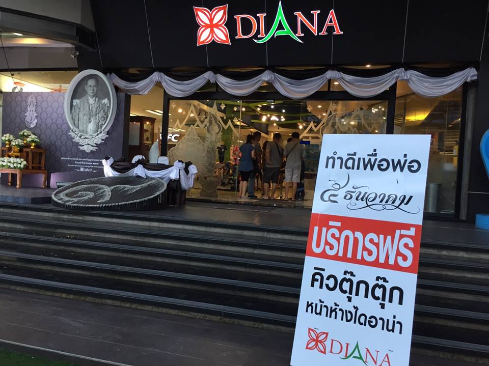 ศูนย์การค้าไดอาน่าคอมเพล็กซ์ ร่วมกับ โรงภาพยนตร์ไดอาน่าซีนีเพล็กซ์ จัดกิจกรรมพิเศษ ทำดีเพื่อพ่อ พาน้องดูหนัง “พรจากฟ้า” โดยเชิญน้องๆ จากหมูบ้านเด็กโสสะ ร่วมชมภาพยนตร์ พรจากฟ้า ที่เล่าเรื่องราวความรัก 3 คู่ ที่มอบของขวัญให้กันและกันด้วย 3 บทเพลงพระราชนิพนธ์ อันได้แก่ เพลงยามเย็น, เพลง Still on My Mind และ เพลงพรปีใหม่ ภายในงานได้รับเกียรติจาก คุณวดีวรรณ จันทรัศมี กรรมการ รองกรรมการผู้จัดการ ศูนย์การค้าไดอาน่า คอมเพล็กซ์ ร่วมต้อนรับเด็กๆ จากหมู่บ้านเด็กโสสะ ณ โรงภาพยนตร์ไดอาน่า ซีนีเพล็กซ์ และหลังจากชมภาพยนตร์ เด็กๆ ได้ร่วมกิจกรรมเที่ยวชมงาน มหัศจรรย์สัตว์แปลก โหนด นา เล ได้ชมสัตว์แปลกหายาก อย่างใกล้ชิด ณ ลานกิจกรรมชั้น 5 ศูนย์การค้าไดอาน่า คอมเพล็กซ์ นอกจากนี้ กิจกรรม ไดอาน่า ทำดีเพื่อพ่อ ยังคงดำเนินอย่างต่อเนื่อง โดยในวันที่ 5 ธันวาคม 2559 จะมีการจัดทำบุญตักบาตร เพื่อถวายเป็นพระราชกุศลแด่ในหลวงรัชกาลที่ 9 บริเวณ ลานหน้าศูนย์การค้าไดอาน่า คอมเพล็กซ์ เวลา 07.00 น. และมีตุ๊กๆ รับจ้างและวินมอเตอร์ไซด์รับจ้าง ร่วมกับไดอาน่า เป็นจิตอาสา ทำดีเพื่อพ่อ วิ่งรถรับส่งฟรี 1 วัน