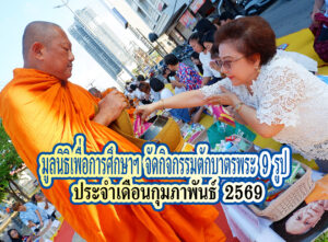มูลนิธิเพื่อการศึกษาฯ จัดกิจกรรมตักบาตรพระ 9 รูป ประจำเดือนกุมภาพันธ์ 2569