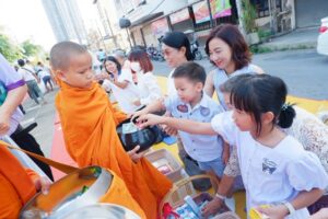 มูลนิธิเพื่อการศึกษาฯ จัดกิจกรรมตักบาตรพระ 9 รูป เนื่องในเทศกาลสงกรานต์