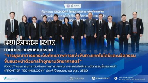 PSU Science Park นำหน่วยงานพันธมิตรร่วม “การบูรณาการยกระดับศักยภาพการแข่งขันทางเทคโนโลยีและนวัตกรรมขั้นแนวหน้าด้วยกลไกอุทยานวิทยาศาสตร์” เปิดตัว“โครงการยกระดับศักยภาพการแข่งขันทางเทคโนโลยีและนวัตกรรมขั้นแนวหน้า(Frontier Technology)” ประจำปีงบประมาณ พ.ศ. 2569