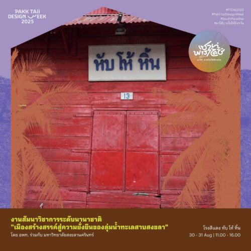 From August 28 to September 7, 2025, come get to know our creators and learn about local stories at Pak Tai Design Week 2025. Let’s feel ‘Bai Jai’ (at ease) until dusk at the old towns of Songkhla and Hat Yai